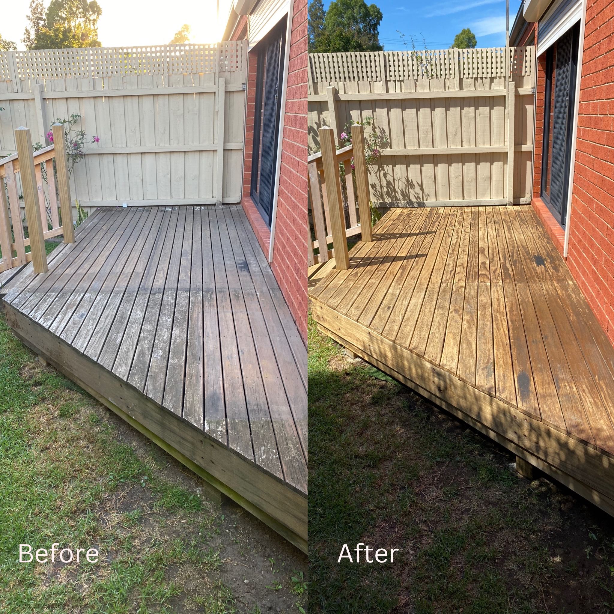 Due to the wood present in decks and eaves, we cautiously apply a particular pressure when washing the area to ensure we do not damage it. The area is also specifically pre-treated with weaker chemicals than what would be applied to concrete.